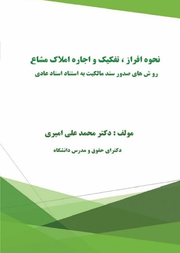 کتاب نحوه افراز ، تفکیک و اجاره املاک مشاع رو ش های صدور سند مالکیت به استناد اسناد عادی اثر دکتر محمدعلی امیری نشر دهکده مدرن