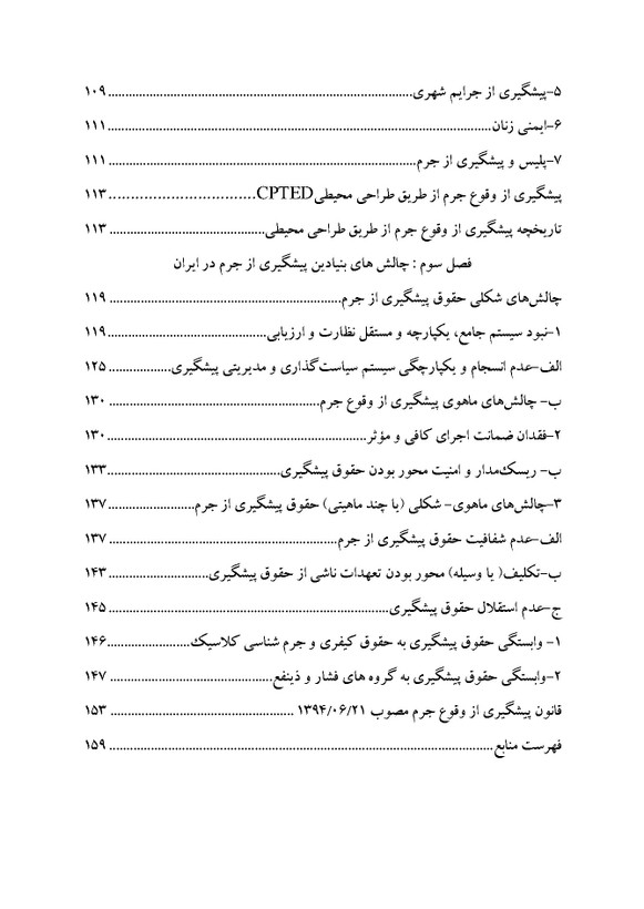 کتاب پیشگیری از جرم اثر دکتر محمدعلی امیری نشر دهکده مدرن - در کتاب پیش رو به عنوان «پیشگیری از جرم»، مولف برآن بوده است که تمامی موضوعات کلیدی و مهم که در کتب پیشگیری از جرم مطرح میشوند، مورد بحث و بررسی قرار دهد و در نگارش این کتاب در ابتدا به بیان مفهوم شناسی و سپس به جایگاه پیشگیری از جرم در جرم شناسی ، پیشگیری از جرم ، پیشگیری از وقوع جرم از طریق طراحی محیطی(CPTED) ، چالش های بنیادین پیشگیری از جرم در ایران ودر انتها به قانون پیشگیری از جرم به صورت کاربردی پرداخته شده است.