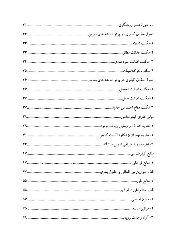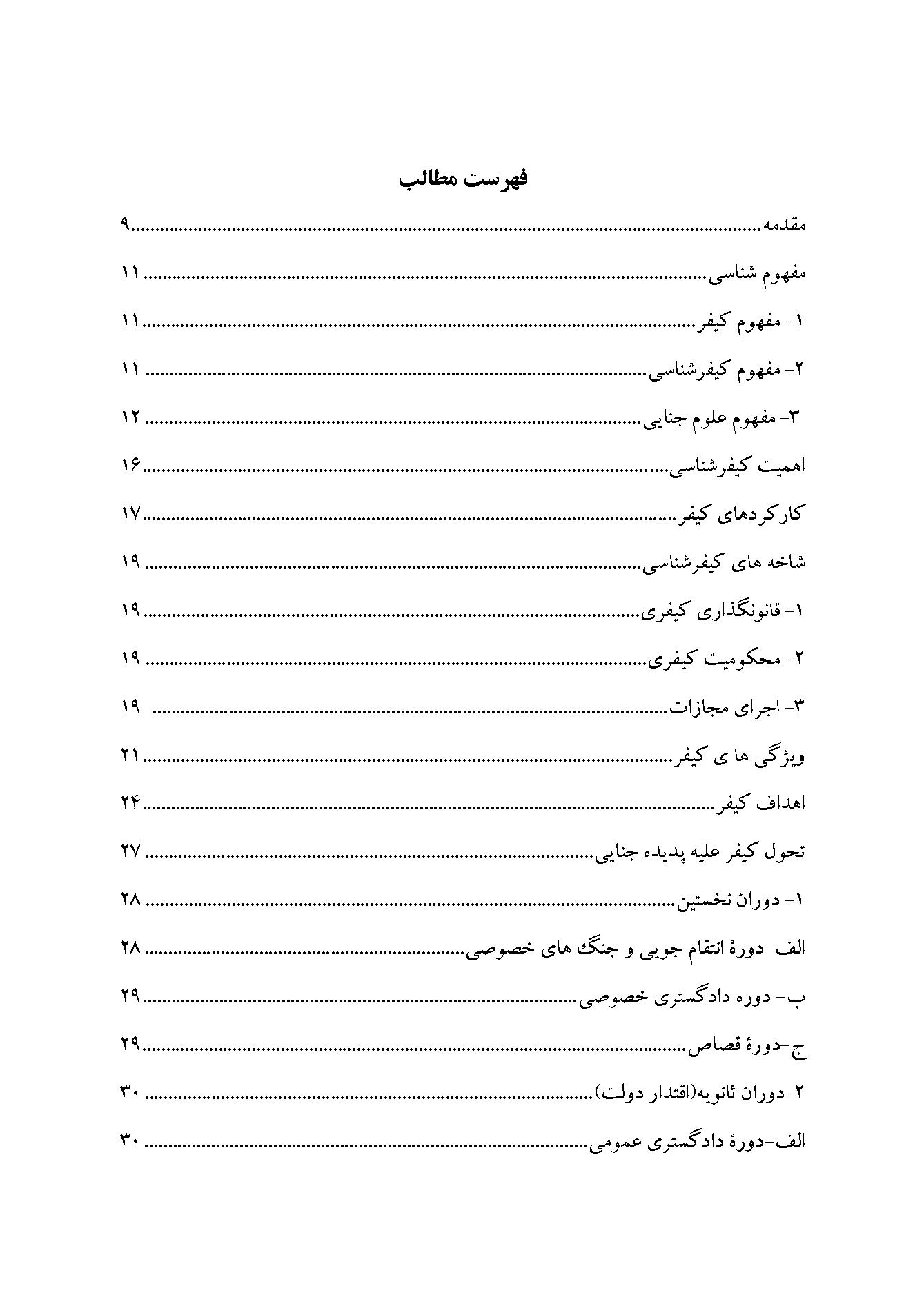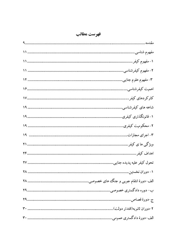 کتاب کیفرشناسی اثر دکتر محمدعلی امیری نشر دهکده مدرن -کیفرشناسی شاخة جدیدی از علوم جنایی می باشد و به دلیل جدید بودن این رشته و آشنایی کمتر دانشجویان و به خصوص حقوقدانان و مردم با مباحث مرتبط با این رشته، لازم است جهت آشنایی بیشتر دانشجویان و حقوقدانان با مباحث مختلف و مرتبط با این رشته، مباحثی همچون مبانی نظری کیفرشناسی ، منابع کیفرشناسی ، تحولات کیفر، رویکردهای کیفرشناسی، اهمیت، ویژگی ها و اهداف کیفر ، انواع کیفر و در نهایت زندان و کانون اصلاح و تربیت به عنوان یک کیفر امروزی مورد بررسی و ارزیابی قرار گیرد.